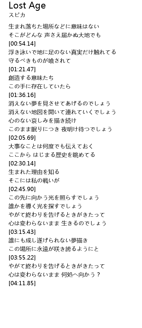 | [00:43.92] | 生まれ落ちた埸所などに意味はない |