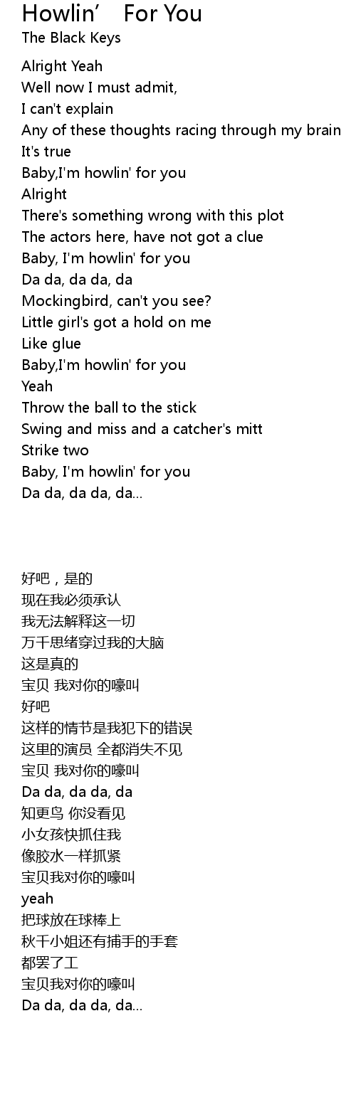 Baby,I'm howlin' for you |