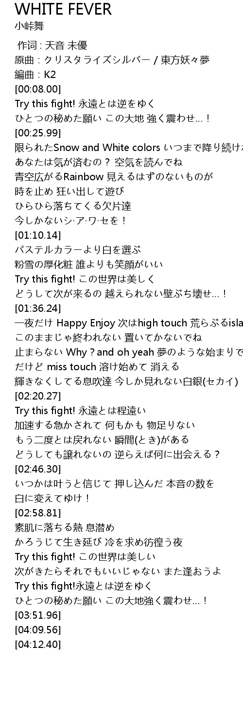 | [03:27.44] | Try this fight! この世界は美しい |
