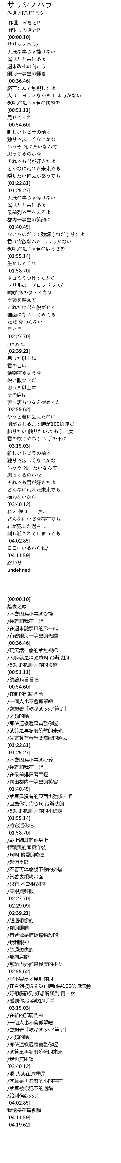 | [00:40.19] | 人はヒヨリミなんだ しょうがない |