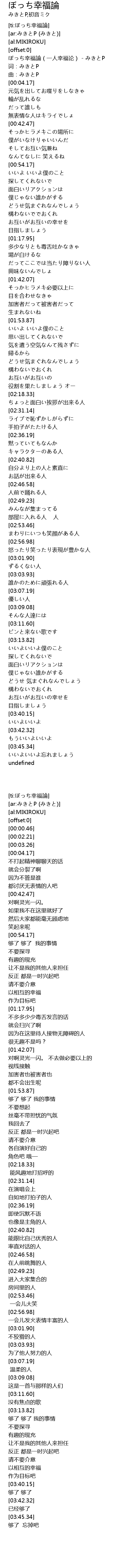| [00:00.46] | ぼっち幸福論(一人幸福论) - みきとP |