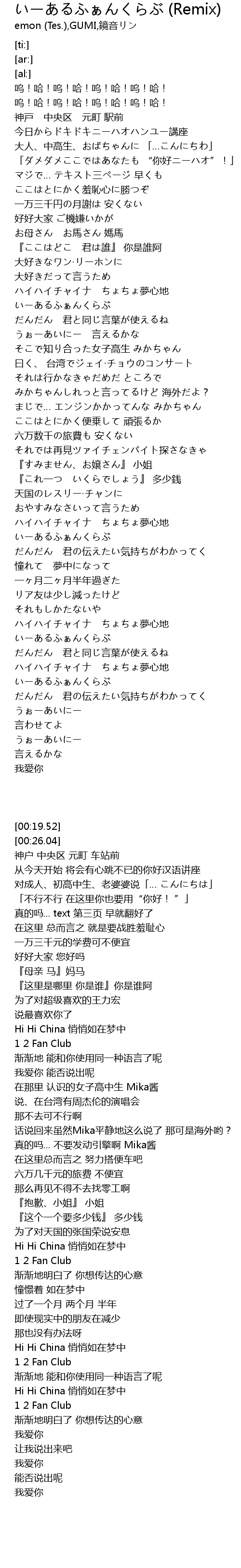 | [00:55.71] | 好好大家 ご機嫌いかが |