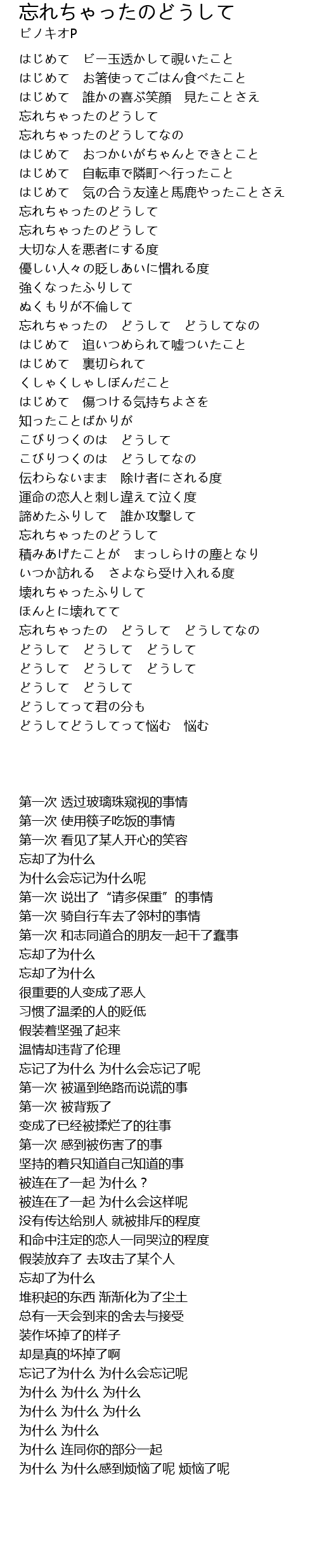| [01:59.960] | 忘れちゃったのどうして |