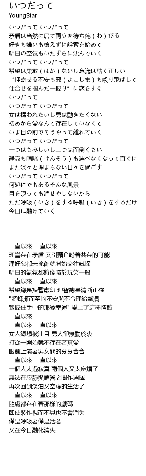 | [03:09.01] | ただ呼吸(いき)をする呼吸(いき)をするだけ |