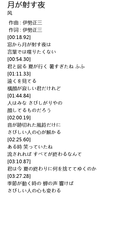 | [00:00.00] | 作曲 : 伊勢正三 |