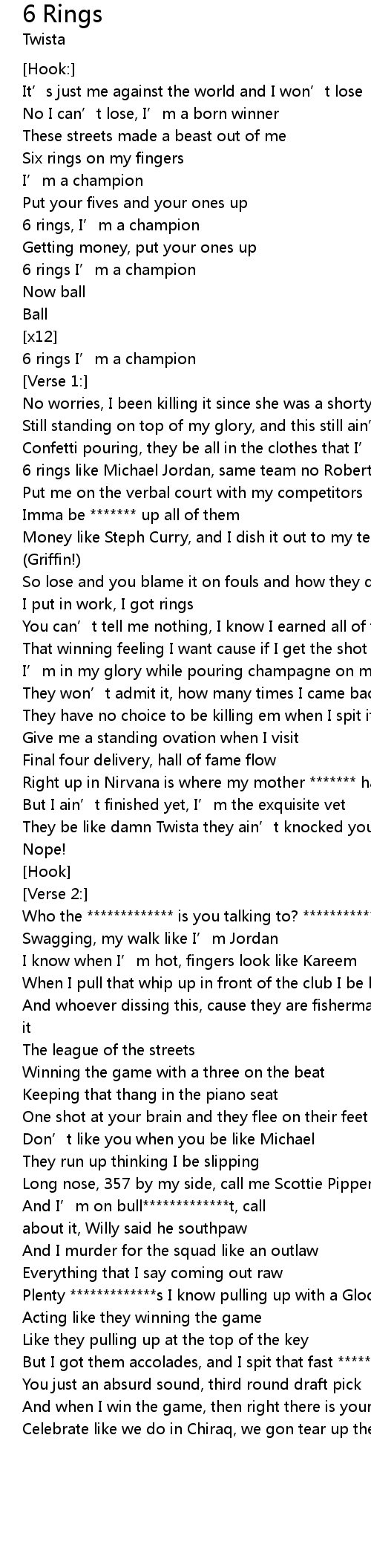 | I' m in my glory while pouring champagne on my body like I was Chris Bosh | |