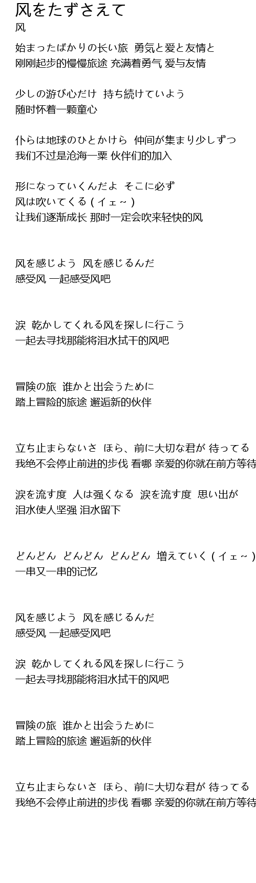 | 形になっていくんだよ そこに必ず 风は吹いてくる(イェ~) | |