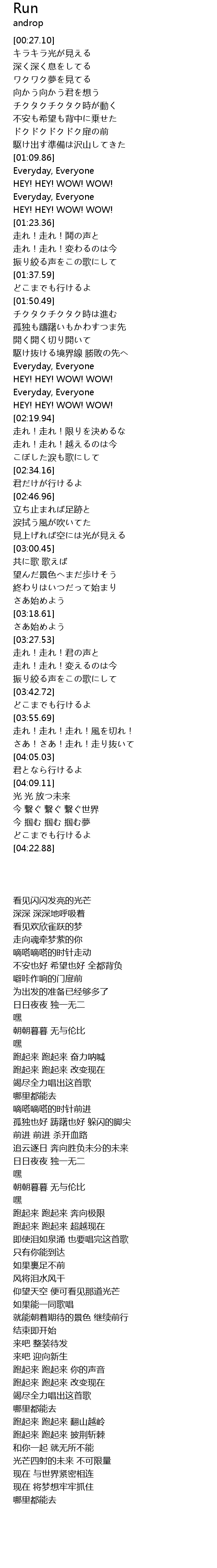 | [01:27.03] | 走れ!走れ!変わるのは今 |