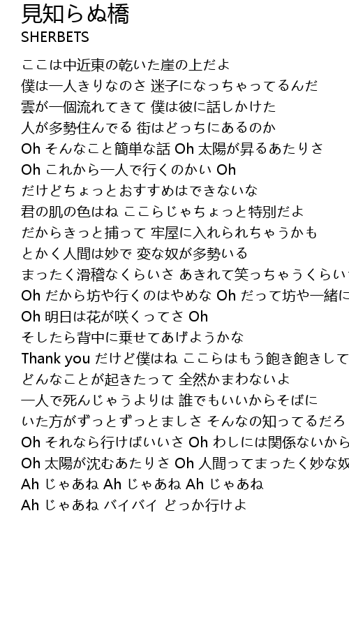| Oh 太陽が沈むあたりさ Oh 人間ってまったく妙な奴らだぜ | |