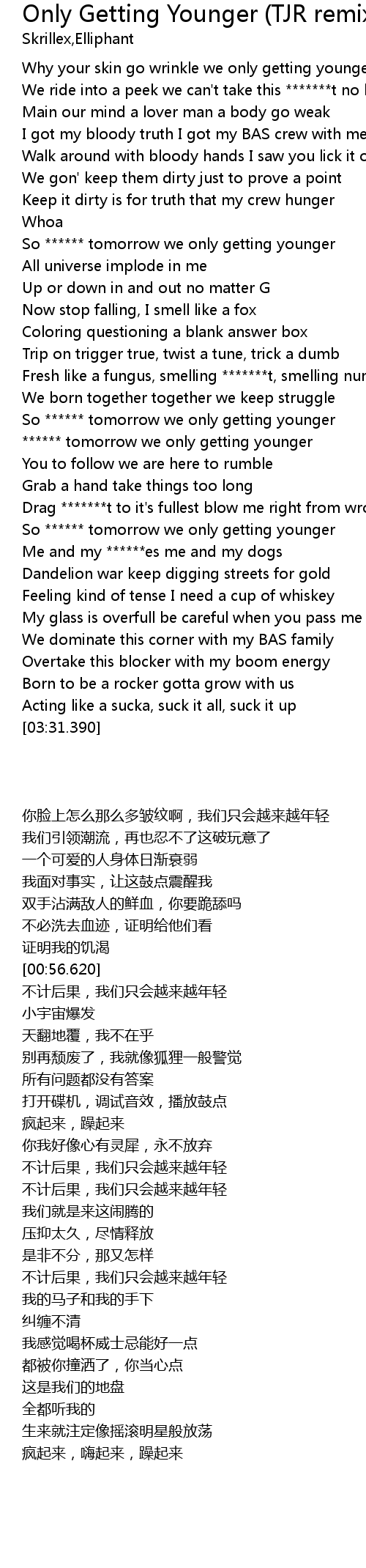 | [01:56.710] | So ****** tomorrow we only getting younger |