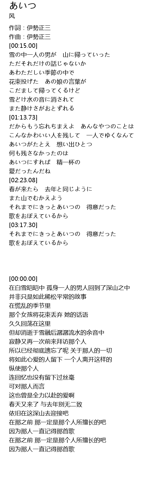 | [00:00.00] | 作詞:伊勢正三 |