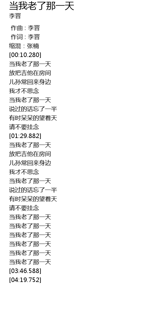 | [03:30.42] | dāng wǒ lǎo le nà yì tiān |