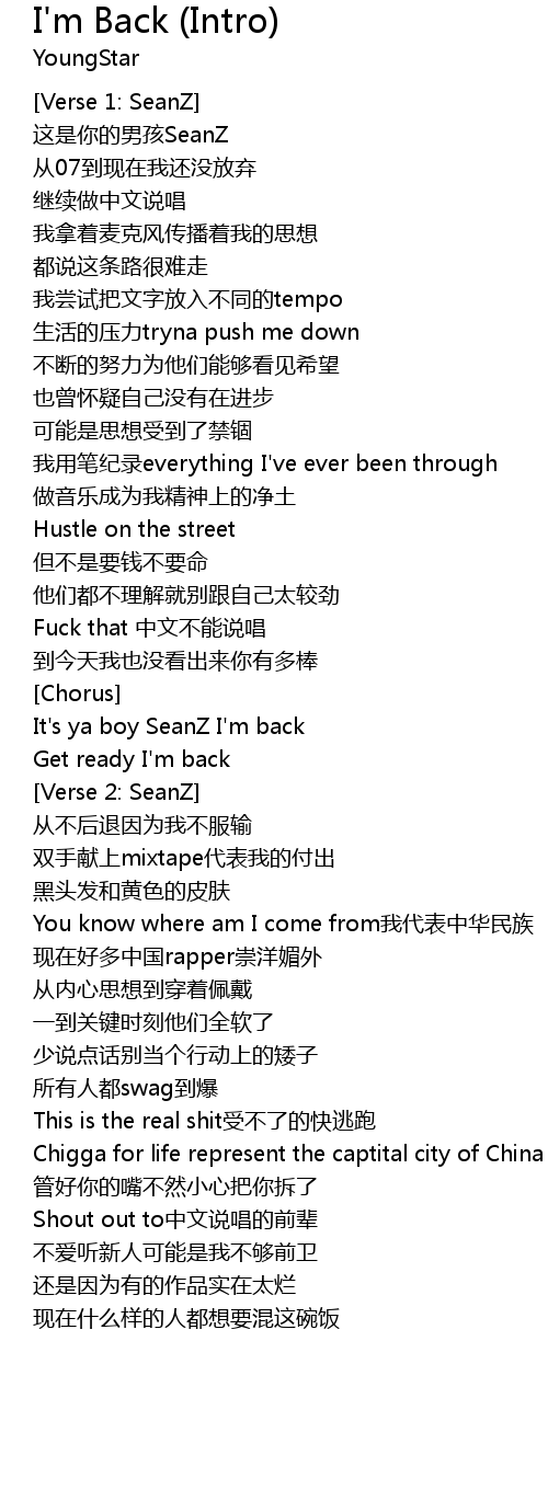 | Shout out to zhōng wén shuō chàng de qián bèi | |