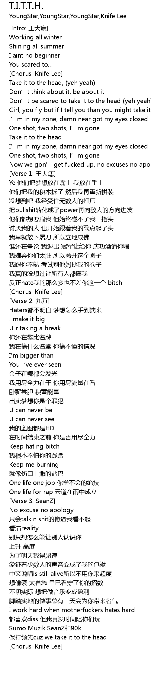 | Don’t be scared to take it to the head (yeh yeah) | |