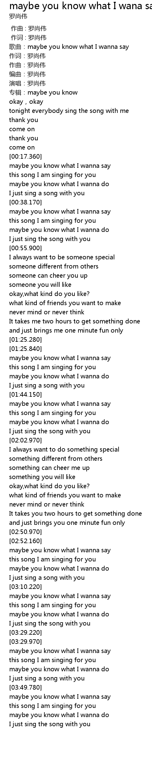 | [00:00.420] | 歌曲:maybe you know what I wanna say |