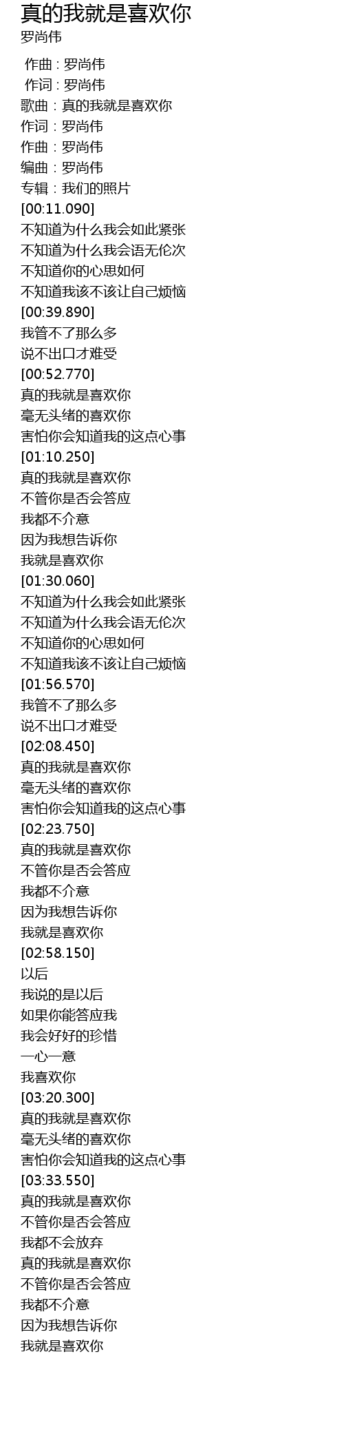 | [00:00.000] | 歌曲:真的我就是喜欢你 |