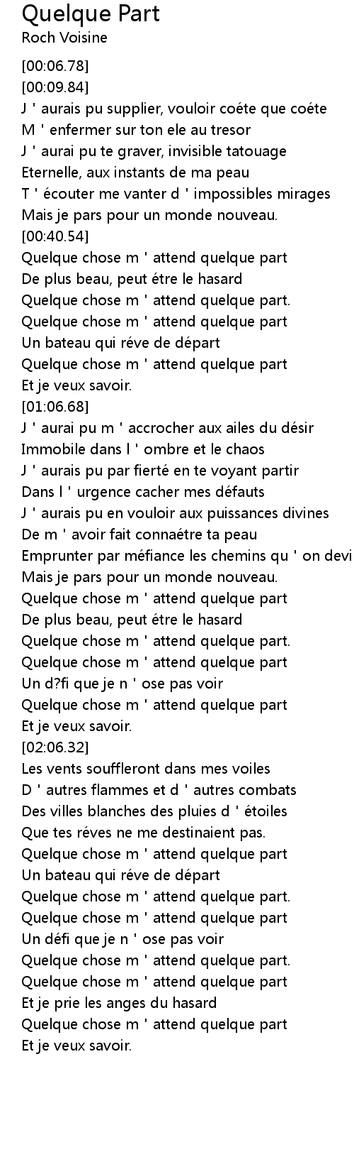 | [00:41.27] | Quelque chose m'attend quelque part |