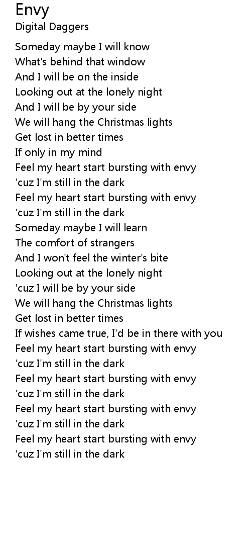 Feel my heart start bursting with envy |