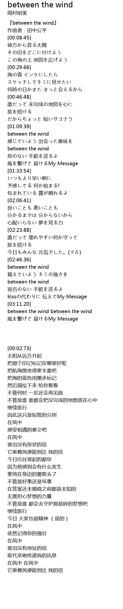 | [00:02.73] | 『between the wind』 |