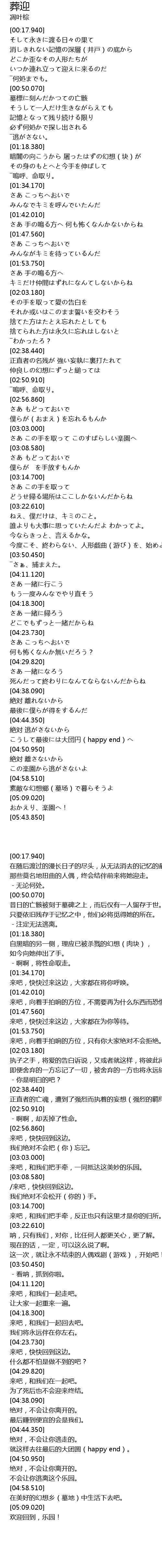 | [00:53.240] | 墓標に刻んだかつての亡骸 そうして一人だけ生きながらえても |