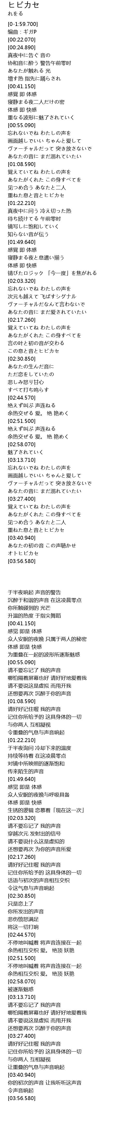 | [02:13.250] | あなたの音に まだ爱されていたい |