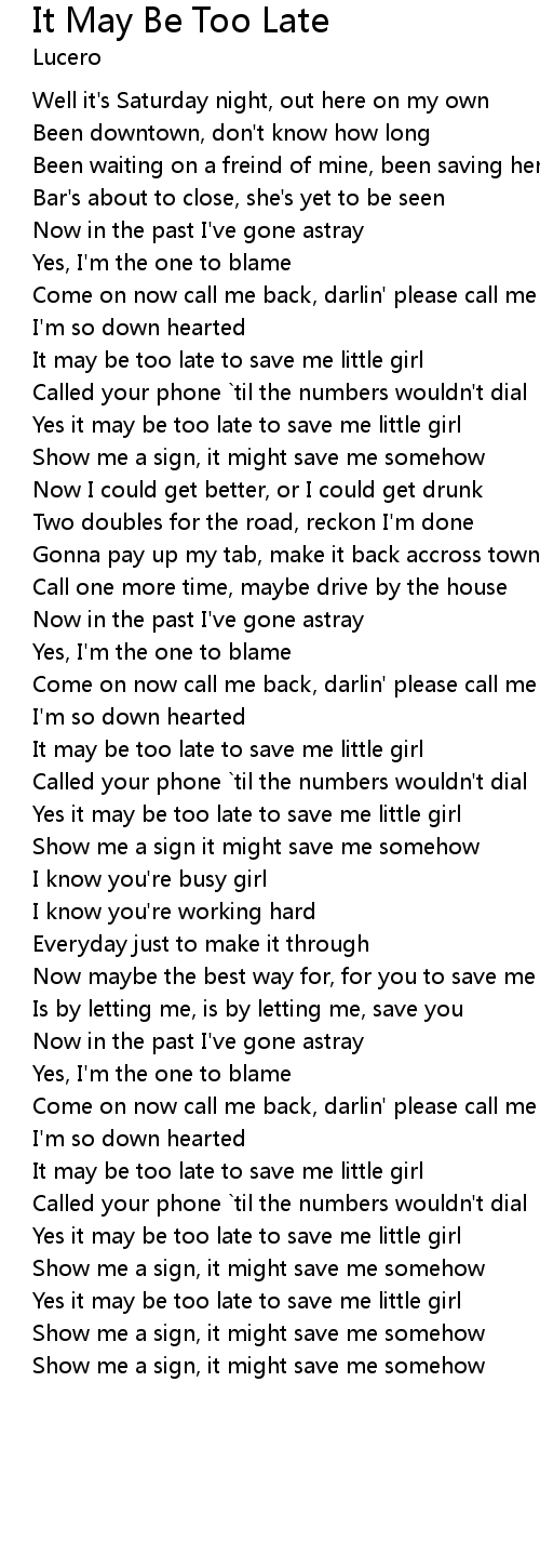 It May Be Too Late Lyrics