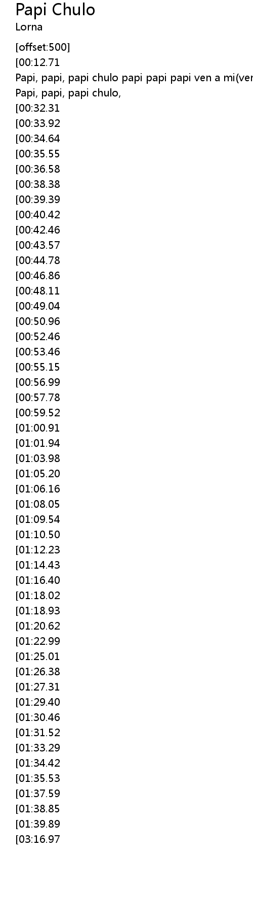 | [00:17.68] | Papi, papi, papi chulo papi papi papi ven a mi ven a mi x3 |