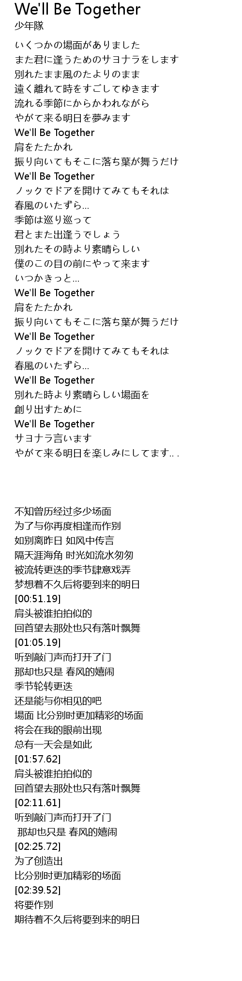 | [02:46.49] | やがて来る明日を楽しみにしてます.. . |