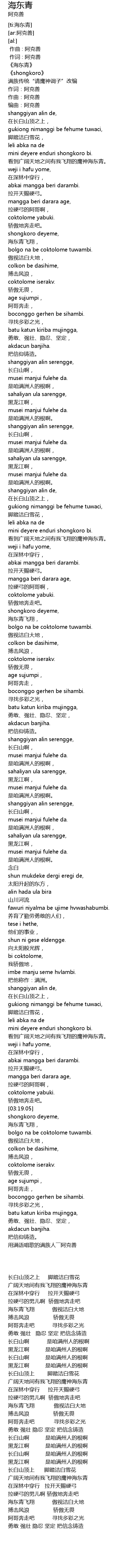 | [03:34.20] | yong man yu chang ge de man zu ren a ke shan |