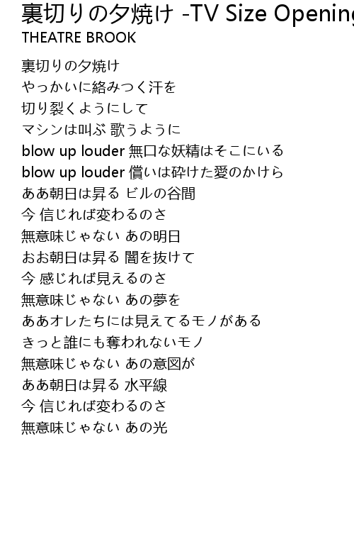 | Song | 裏切りの夕焼け -TV Size Opening Ver.- |