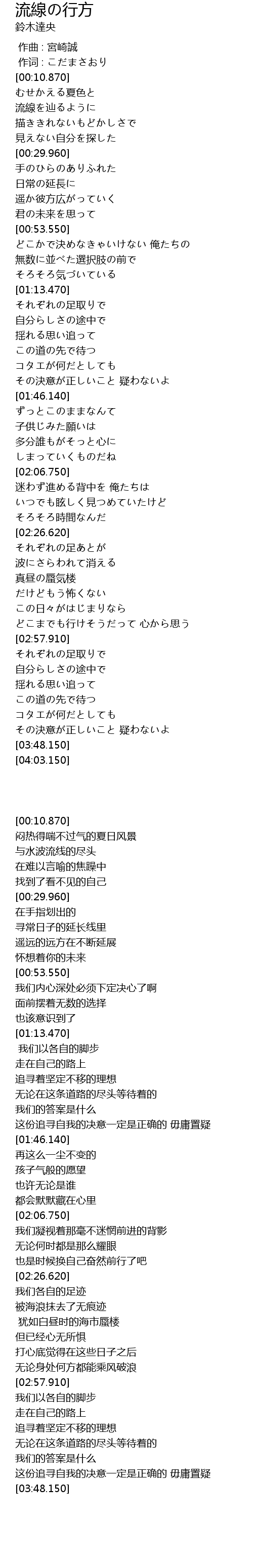 | [03:36.030] | その決意が正しいこと 疑わないよ |