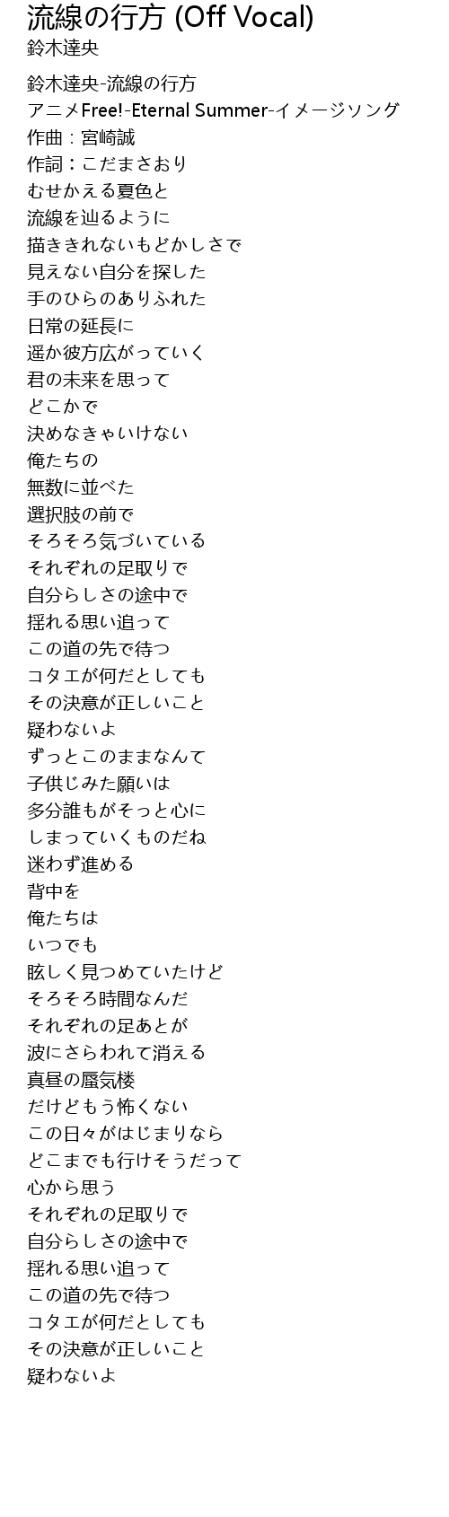 | [00:02.728] | アニメFree!-Eternal Summer-イメージソング |