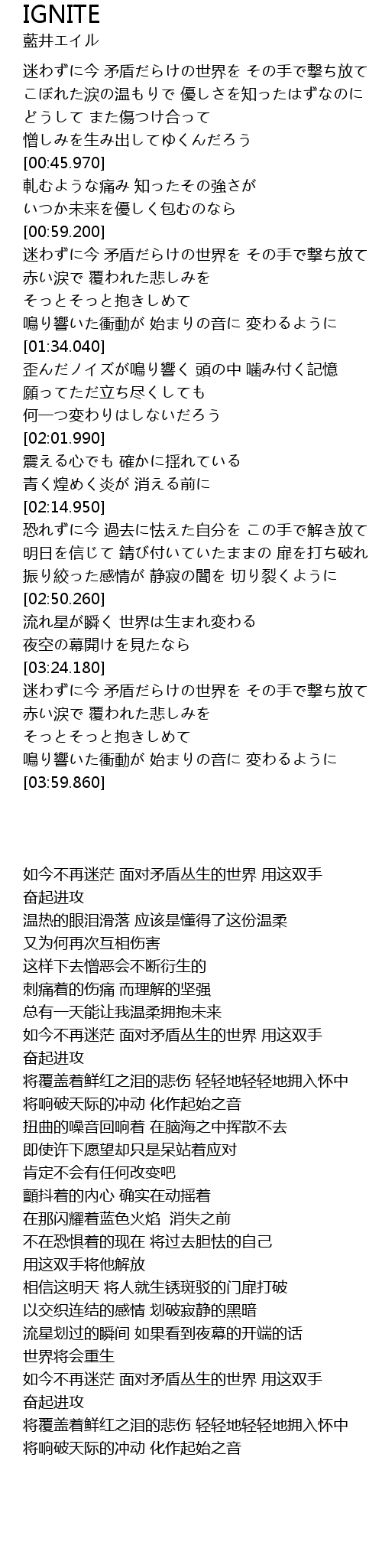| [03:24.770] | 迷わずに今 矛盾だらけの世界を その手で撃ち放て |