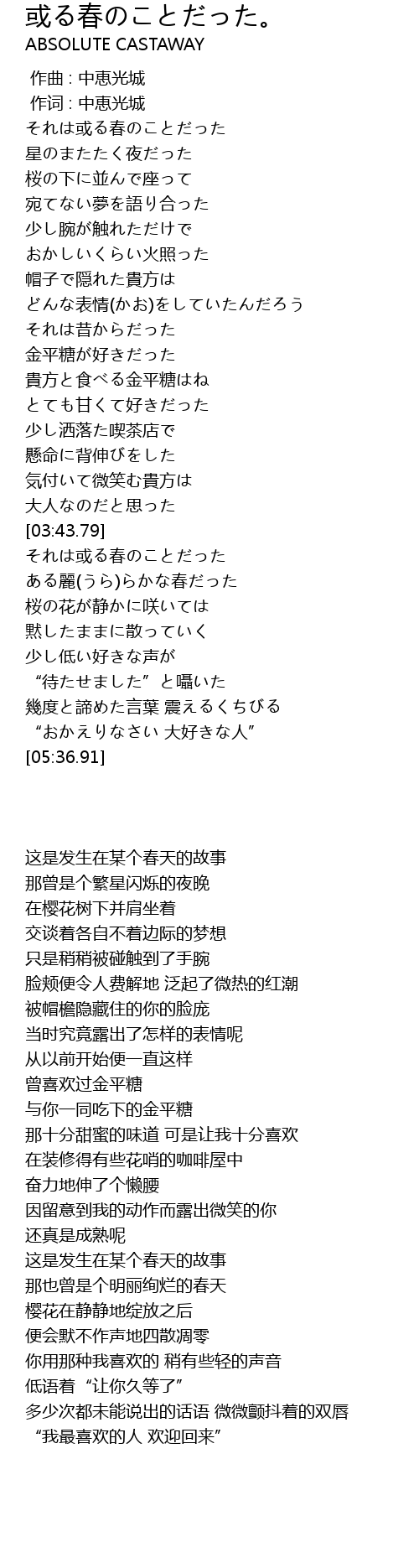 | [04:06.36] | それは或る春のことだった |