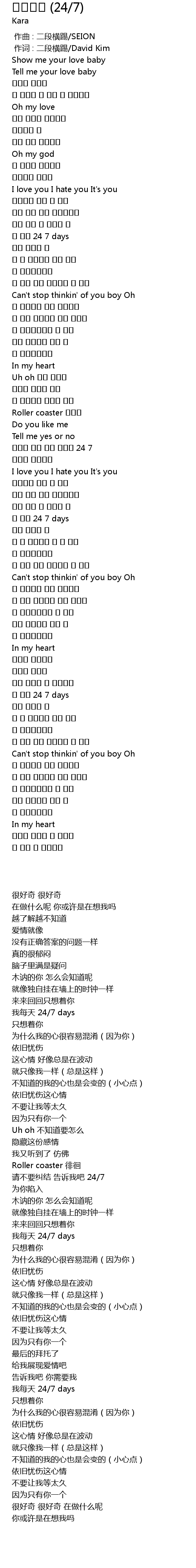 | [01:41.250] | 비꼬지 말고 내게 말해줘 24 7 |
