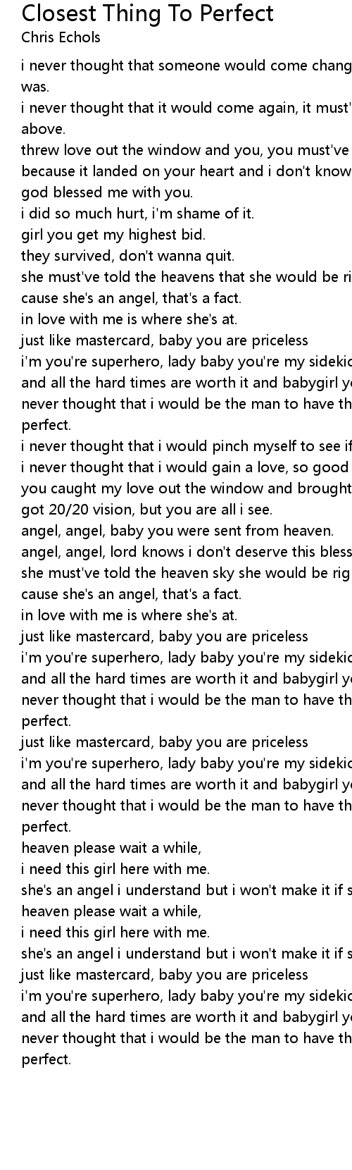 never thought that i would be the man to have the closest thing to perfect. |