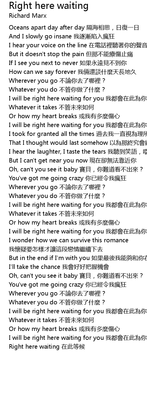 | [01:35.18] | I will be right here waiting for you 我都會在此為你等候 |
