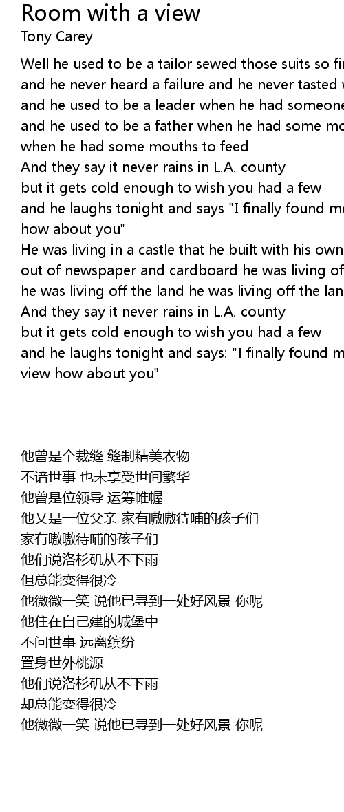 and he laughs tonight and says "I finally found methe room with a view how about you" |