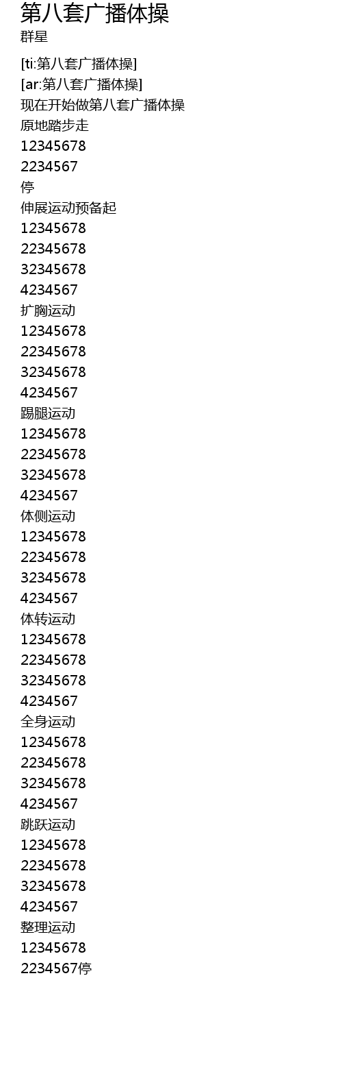 | [00:02.498] | 现在开始做第八套广播体操 |