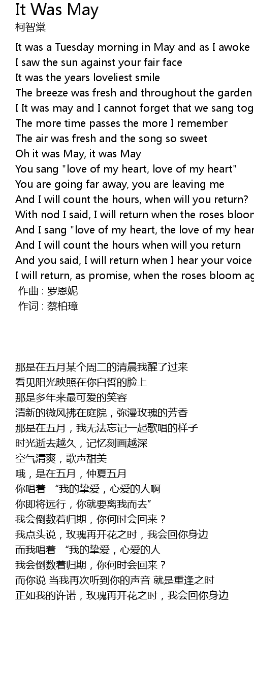 | [00:40] | I It was may and I cannot forget that we sang together |