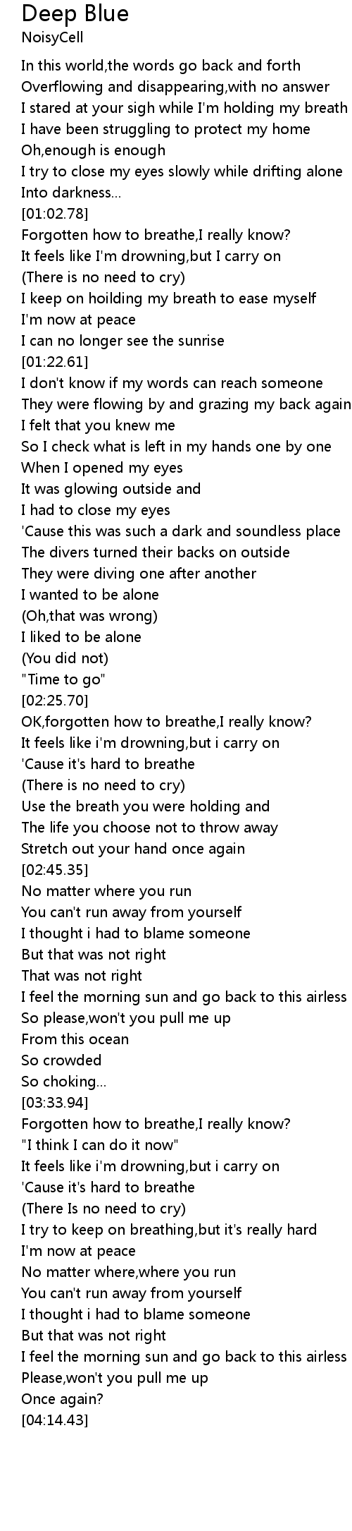 It feels like i'm drowning,but i carry on |