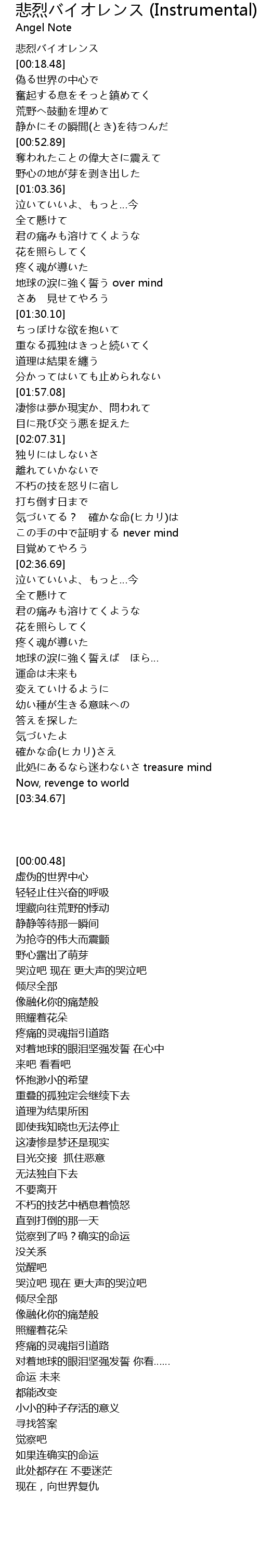 | [00:00.48] | 悲烈バイオレンス |
