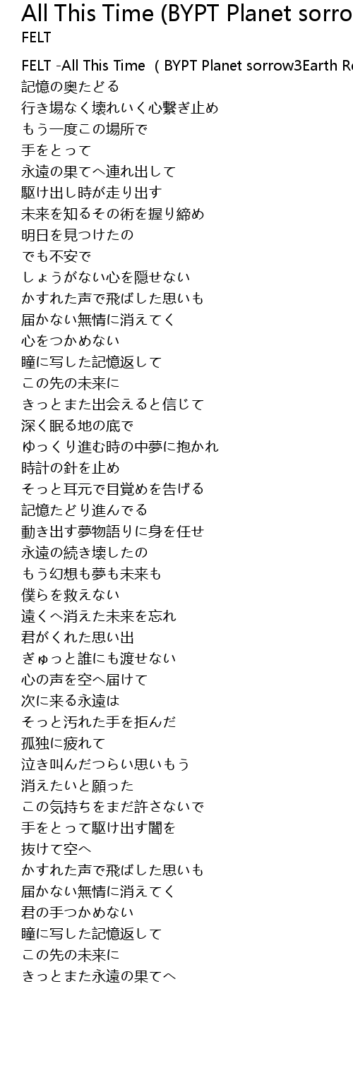 | [00:00.416] | FELT All This Time BYPT Planet sorrow3Earth Remix |