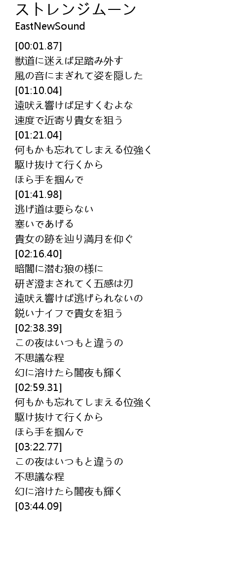 | [02:28.05] | 遠吠え響けば逃げられないの |