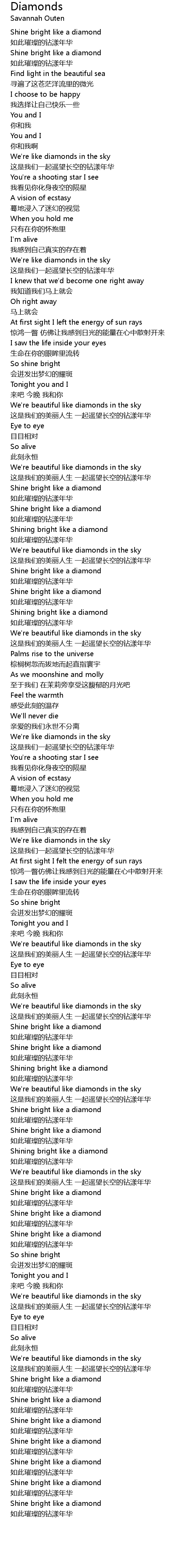 | [01:19.21] | Shining bright like a diamond |