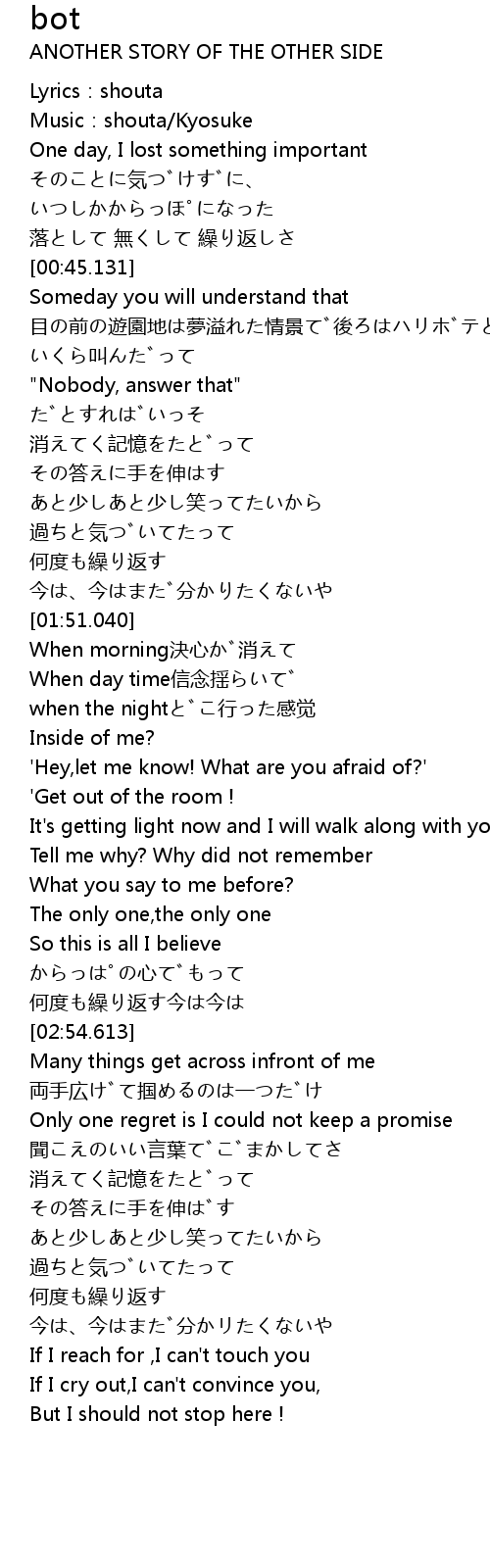 | [0-1:57.000] | Lyrics:shouta |