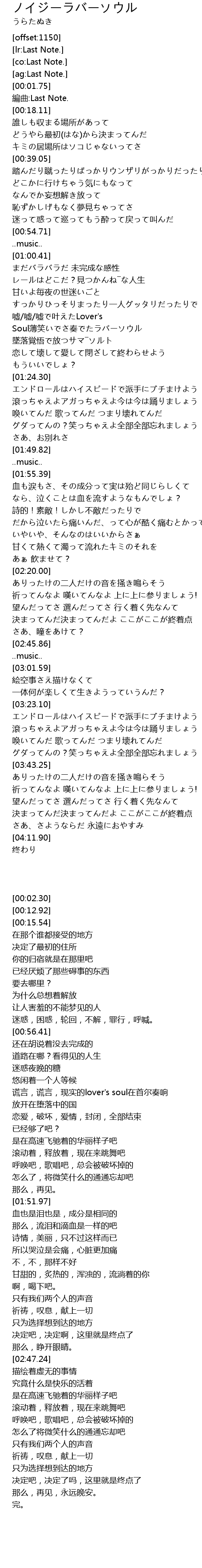 | [00:12.92] | 編曲:Last Note. |