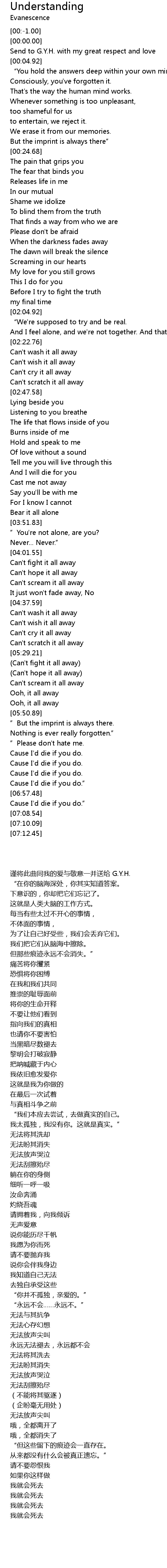 | Song | Understanding |