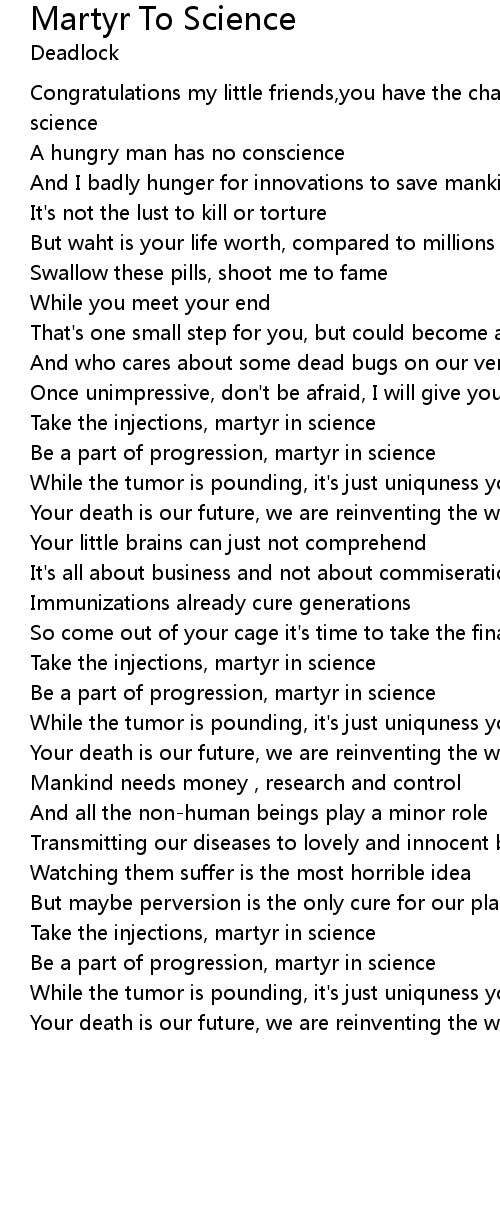 Be a part of progression, martyr in science |