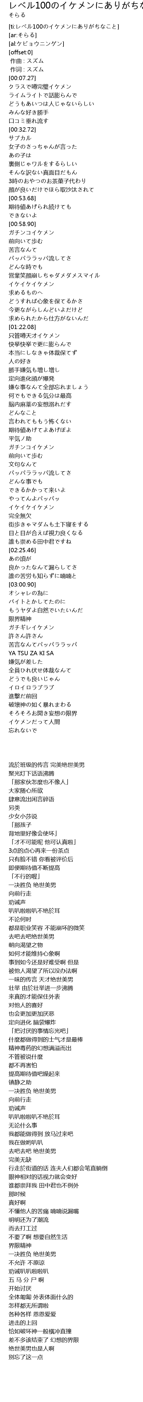 | [ti:レベル100のイケメンにありがちなこと] | |